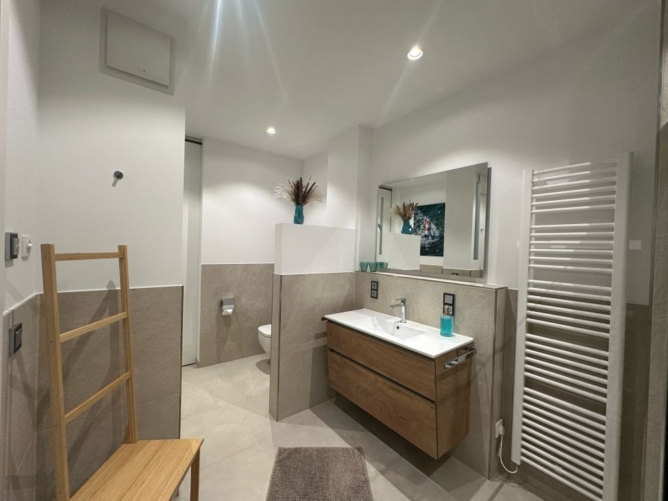 Die Wohnung besticht durch ihre exklusive Ausstattung: Ein offener Wohn- und Essbereich mit großer Kochinsel lädt zum gemeinsamen Kochen und Genießen ein. Drei liebevoll eingerichtete Schlafzimmer bieten Platz für bis zu sechs Personen ideal für Familien, Paare oder Freundesgruppen. Zwei moderne Badezimmer mit ebenerdigen Duschen sowie ein Waschtrockner sorgen für zusätzlichen Komfort im Alltag.